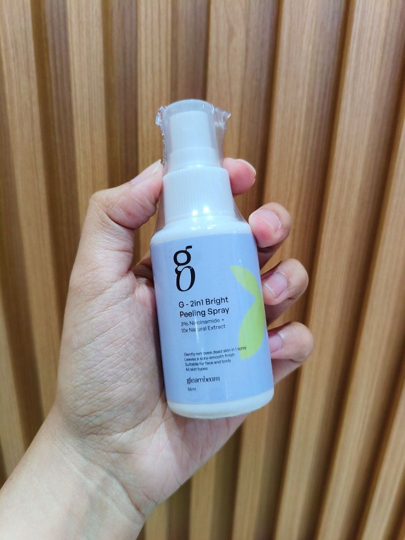 1 Spray per area (for face and body), gently massage with your hands to lift dead skin cells. Use 3 times a week. For best results, pair with other Gleambeam products.